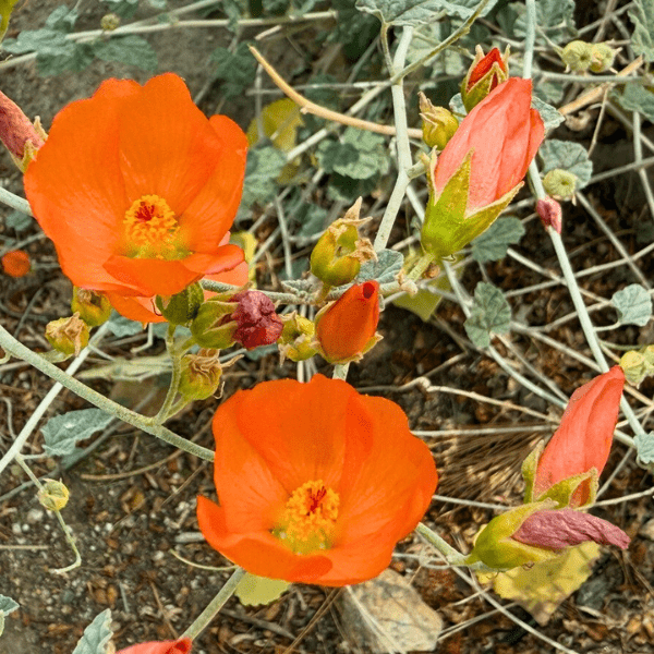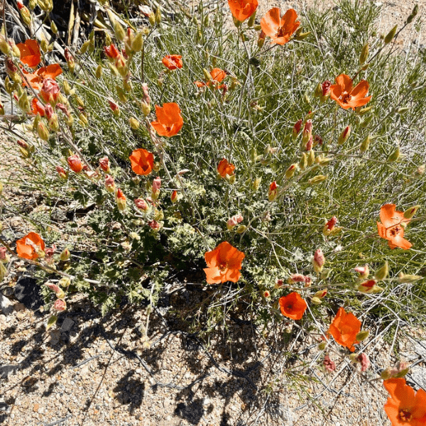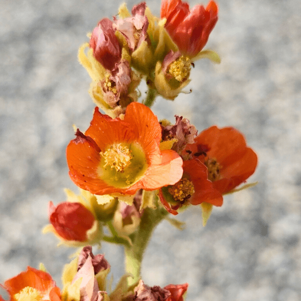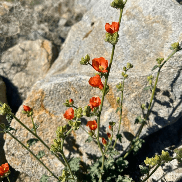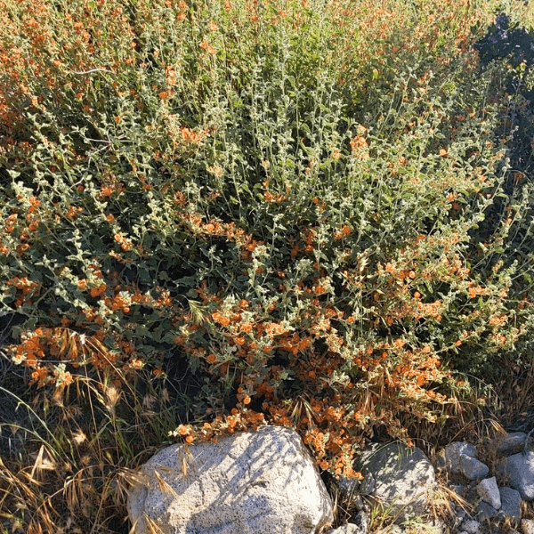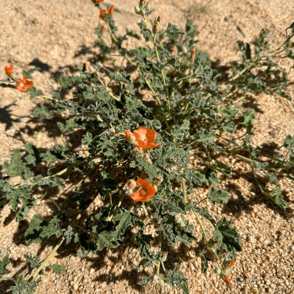 One of the most drought-tolerant and largest-flowered species of Globe-mallow, it produces numerous large, bowl-shaped flowers in shades of apricot-orange to pink. Arranged in wand-like clusters near the stem tips, these blooms create stunning displays, especially in wet years. It is an ecological powerhouse for desert gardens, providing a steady source of pollen and nectar for honey bees, butterflies, and other insects throughout the year.