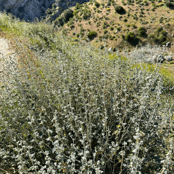 - Woolly Foliage: Grayish, fuzzy leaves with three lobes and scalloped edges help the plant withstand intense heat.