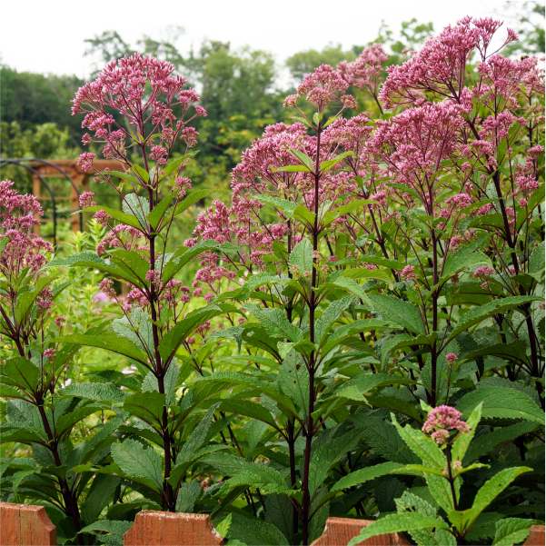 - Spotted Joe Pye Weed (Eutrochium maculatum): Tall stems support showy mauve flower heads with a subtle vanilla fragrance. A favorite nectar source for butterflies, bees, and beneficial insects.