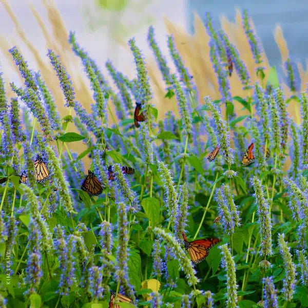 - Anise Hyssop (Agastache foeniculum): This versatile plant features fragrant, tubular flowers and leaves with a refreshing, licorice-like scent that attracts a wide range of pollinators, thrives in sunny to partly shady spaces, and is an excellent low-water, low-maintenance choice.