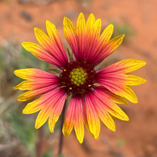Bring the vibrant energy of a summer celebration to your garden with Indian Blanket (Gaillardia pulchella), also known as Firewheel. This popular annual features showy, pinwheel-like flower heads with reddish-brown centers and rays that are red at the base and tipped with yellow. Resembling the bold colors utilized by Native Americans in weaving blankets, these "beautiful" (pulchella) wildflowers stand atop slender, branched stems and can literally "blanket" the ground in color.