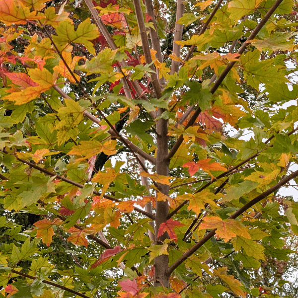 True to its name, red is on display year-round—from pinkish-red spring flowers to reddish fruit (samaras), red-tinged leafstalks, and its brilliant scarlet-to-orange autumn foliage. Young trees have smooth, silvery-gray bark, adding winter interest to the landscape.