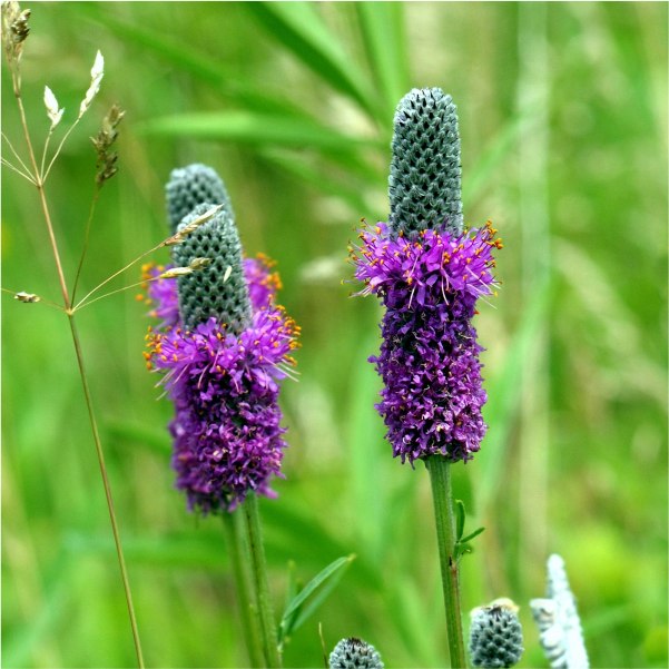 - Purple Prairie Clover (Dalea purpurea): A striking purple-flowered legume that improves soil health by fixing nitrogen, while attracting bumblebees, butterflies, and other pollinators with its unique cone-shaped flower spikes.