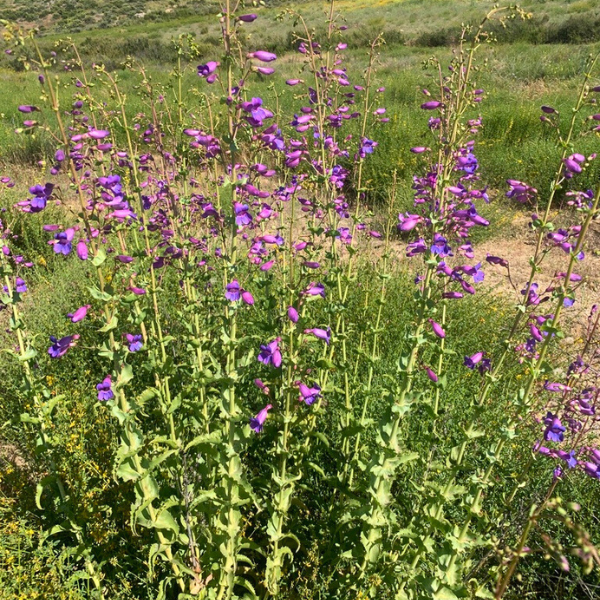 Living up to its name, Showy Penstemon (Penstemon spectabilis) is a spectacularly showy perennial with leafy stems that can rise to over 3 feet. Also known as Showy Beardtongue, it bears wide-mouthed, tubular flowers ranging from lavender to purple-blue to pink. In ideal conditions, this plant may flower from late winter into summer. It grows fast, reaching 2 to 4 feet tall and 3 to 4 feet wide.