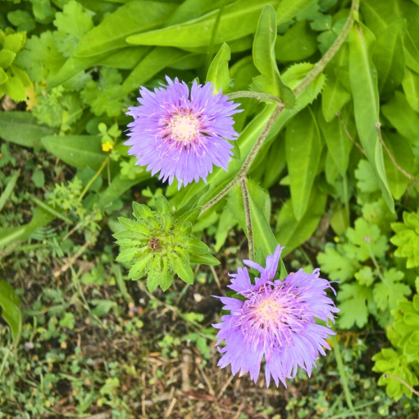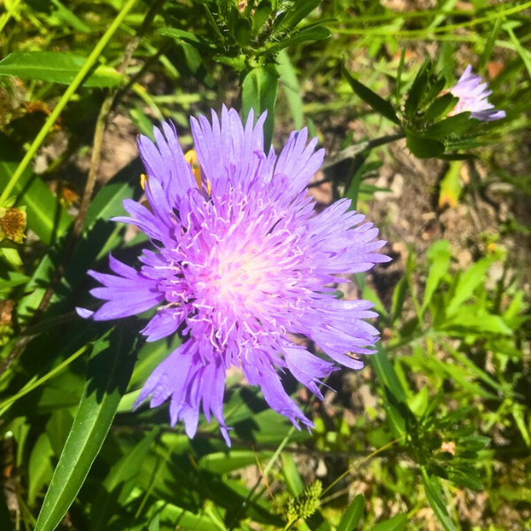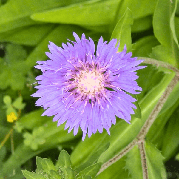 Below the blooms, a basal cluster of dark green, lance-shaped leaves forms an attractive rosette that persists through the winter, providing year-round groundcover and texture. Adaptable and resilient, Stokes Aster thrives in acidic sands and rich soils alike. It is resistant to deer, rabbits, drought, and heat, making it a low-maintenance favorite for borders, cottage gardens, and sunny spots where you want lasting beauty without the fuss.