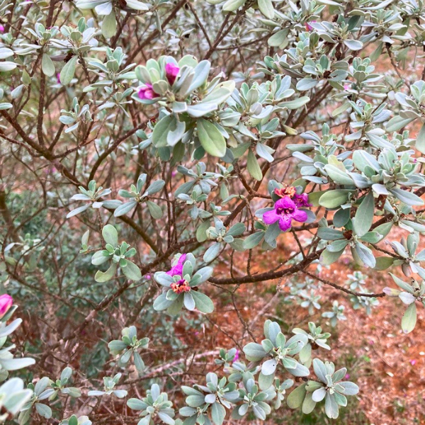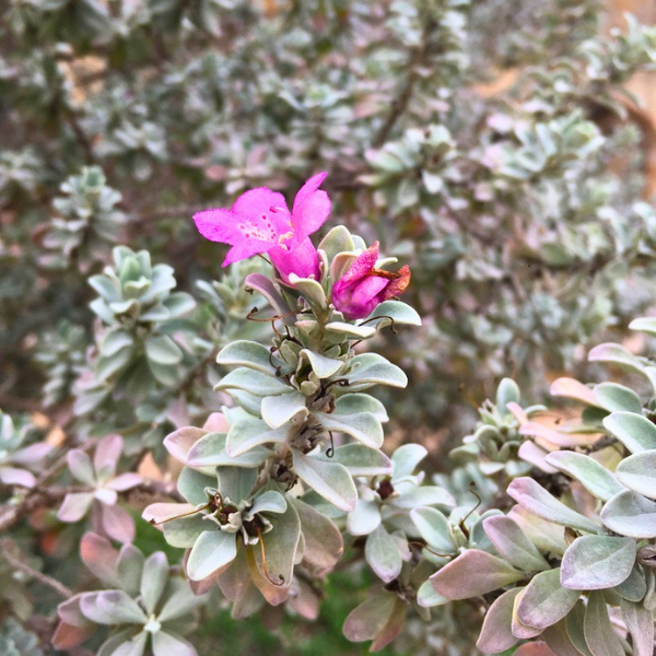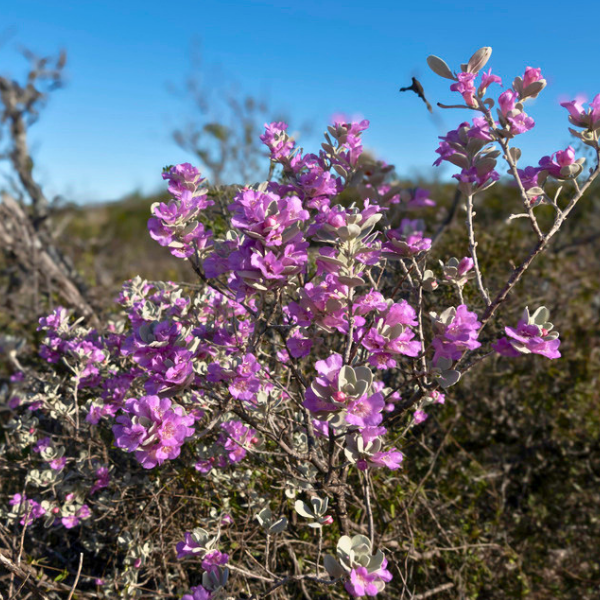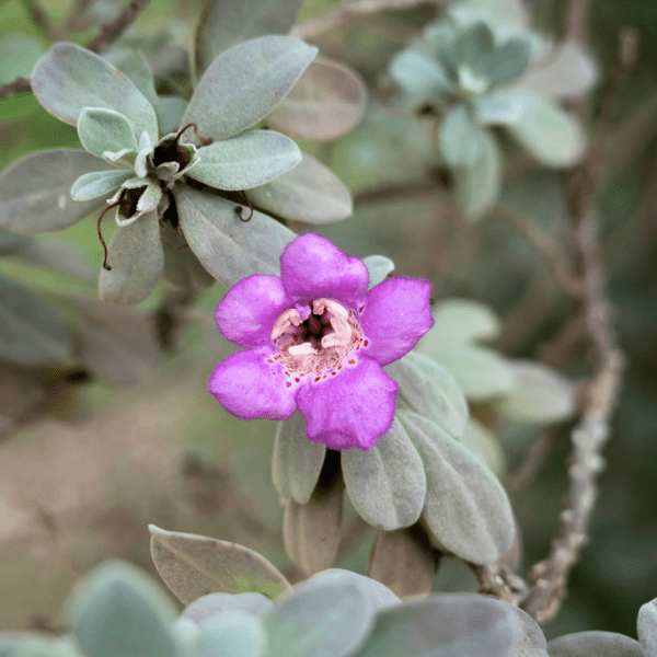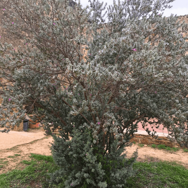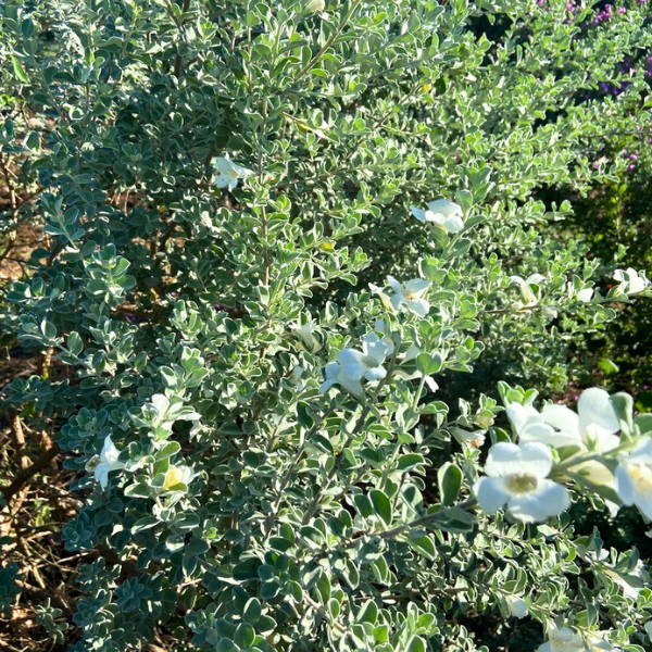 Bring the iconic "Silverleaf" of the Chihuahuan Desert to your landscape with Texas Sage (Leucophyllum frutescens), a rugged and breathtaking evergreen shrub also known as Cenizo or Barometer Bush. This compact, loosely branched plant is famous for its shimmering, silvery-gray foliage covered in millions of tiny, soft hairs. It earns the name "Barometer Bush" because its showy masses of pink-lavender flowers burst into bloom in response to spikes in humidity or rainfall, often "predicting" a summer shower.